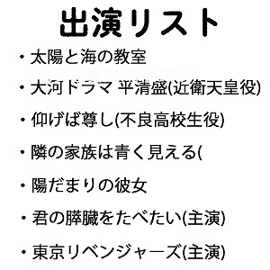 大河ドラマ『平清盛』で近衛天皇を演じ、『君の膵臓をたべたい』では平凡な高校生を演じ、『東京リベンジャーズ』では元カノのためにタイムワープする青年を演じている……!?