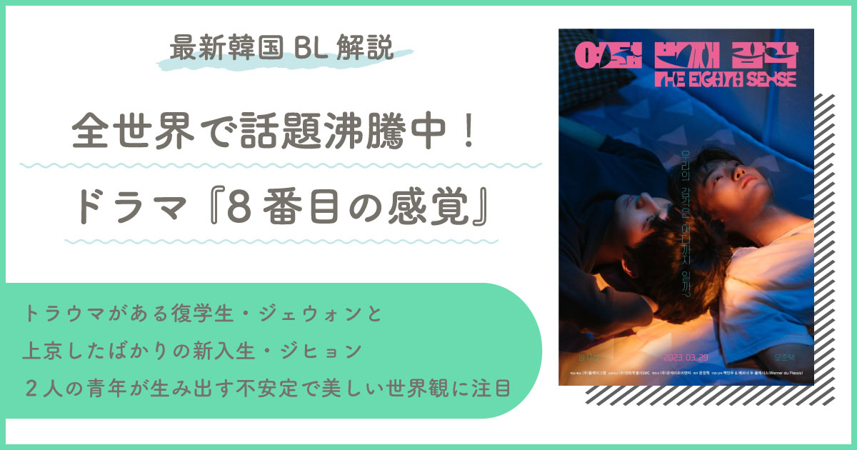 ストーリー、演出、音楽、全てが心に刺さり、エピソードを増すごとに涙腺が崩壊した筆者。余韻から抜け出せず既に4週目に突入している筆者から今回、『The Eighth Sense(8番目の感覚)』とその魅力についてとことん皆様にご紹介していきたいと思います……!!!
